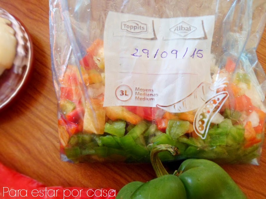 Es algo que hago habitualmente: congelar verduras y hortalizas, picadas previamente. Lo hago desde que, hace tiempo, descubrí que entre los congelados del súper había "preparado para sofrito congelado", "cebolla picada congelada" o "zanahoria rallada congelada", por poner ejemplos. No es que me parezca mal que se vendan, pero para mí es mucho mejor hacerlo casero porque así, entre otras cosas, las verduras y hortalizas que voy a utilizar han sido elegidas antes por mi.