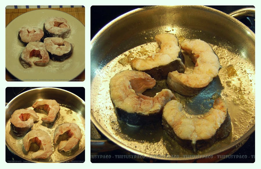 ~ Mientras se hacen las patatas, pasa por harina las rodajas de pescado