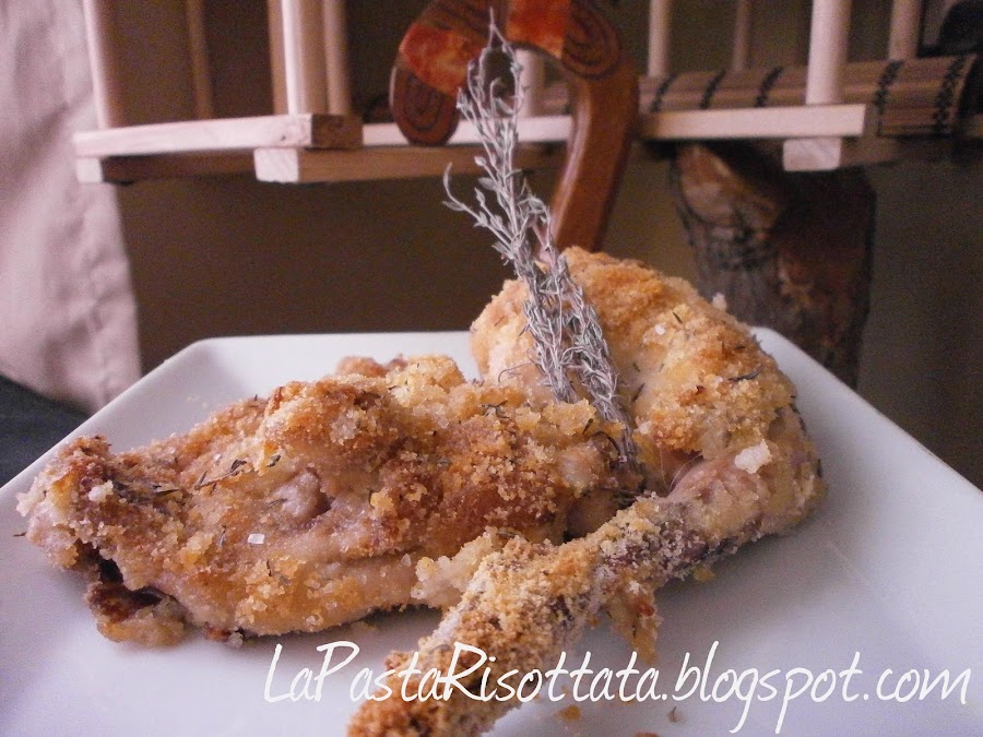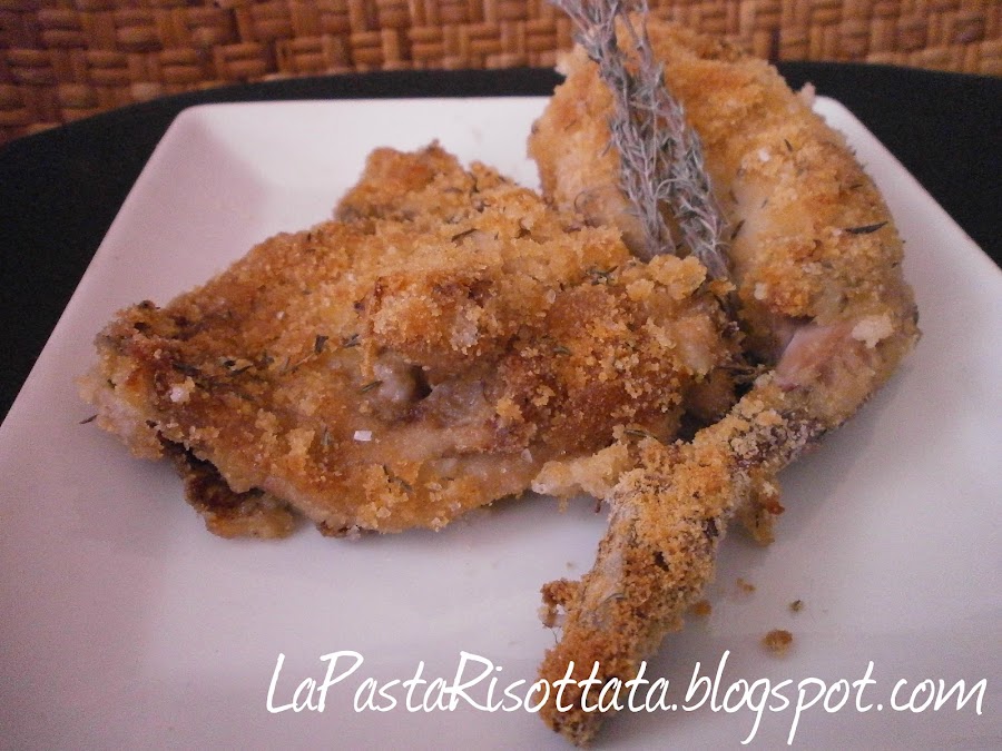 Preparare la panatura mescolando il pane grattuggiato con il formaggio,lo zenzero,un po di timo,sale e un filo di olio.