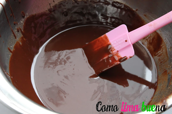 Derretir la manteca y volcar sobre el chocolate picado. Dejar reposar e integrar.