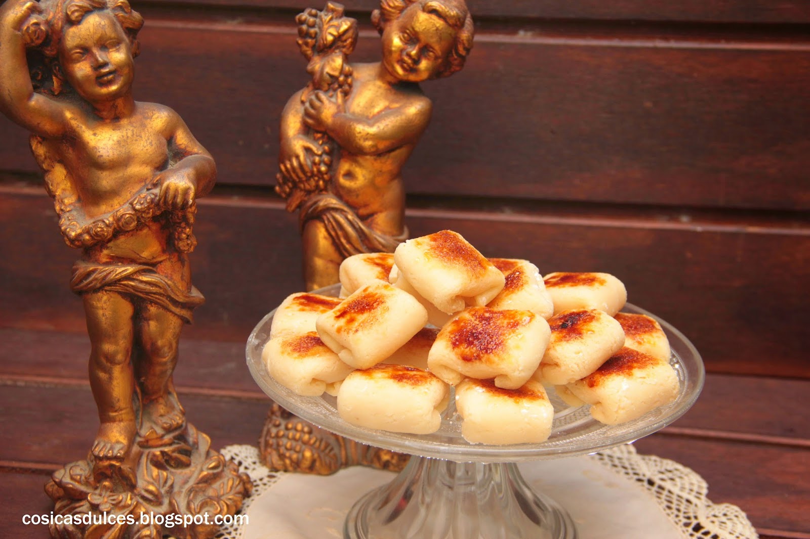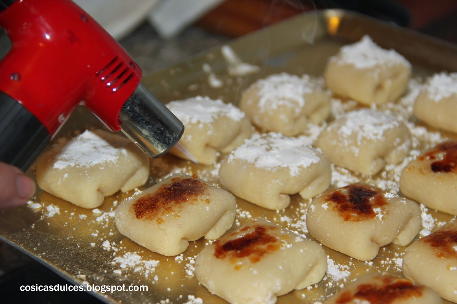 Una vez formados los espolvoreamos con azúcar glas y quemamos la superficie con ayuda de un soplete.