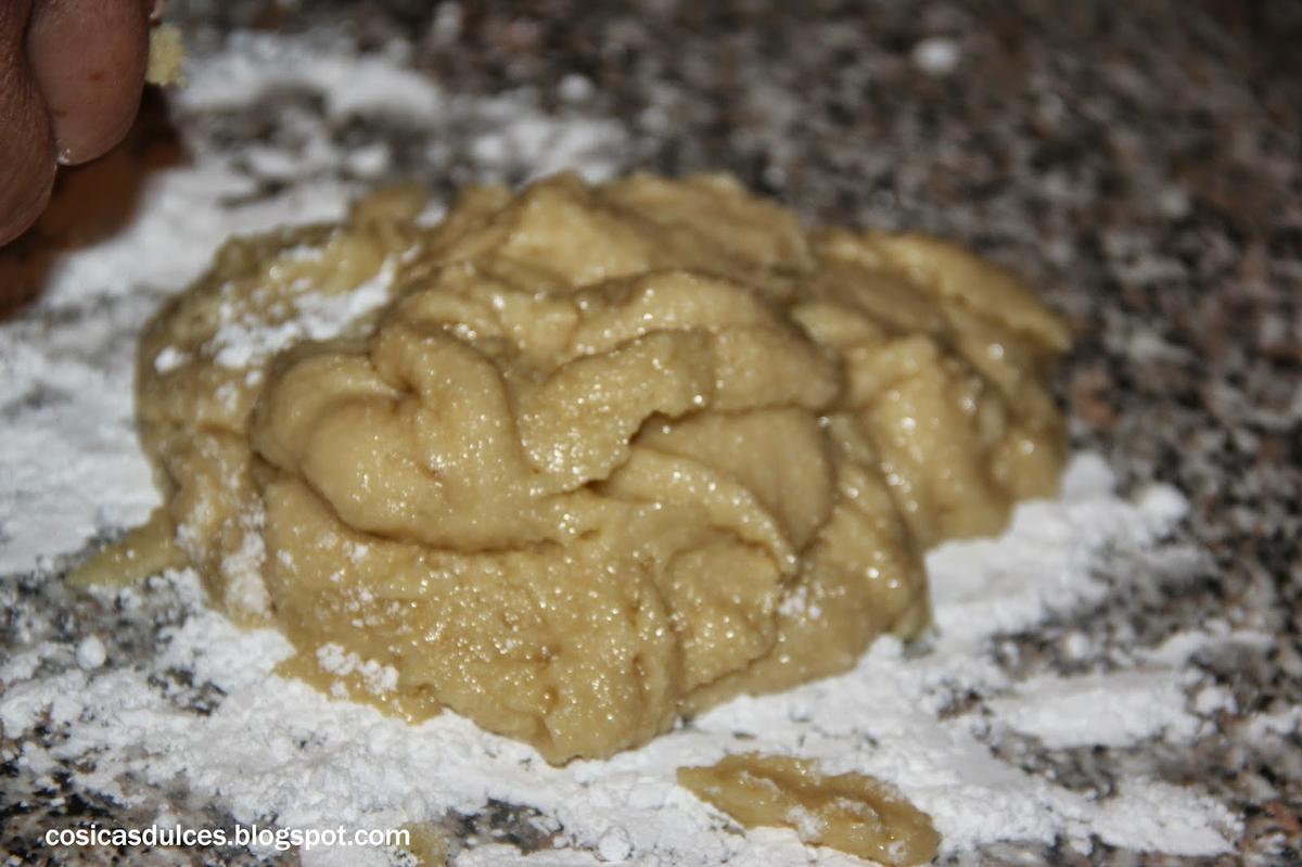 Veremos esta masa (que será muy blanda y pegajosa) en una superficie de trabajo y vamos amasando junto al azúcar glas.