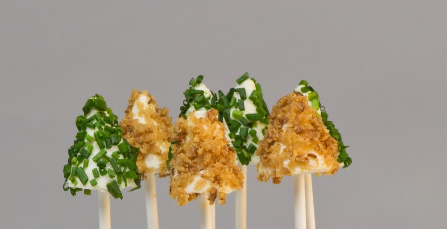 La cebolla frita que he utilizado es la que siempre compro en Ikea, y ha quedado muy bien. También he preferido usar mi ingrediente mágico (la frambuesa deshidratada) en lugar de pimienta roja. El sabor cítrico con el queso le da un toque diferente.