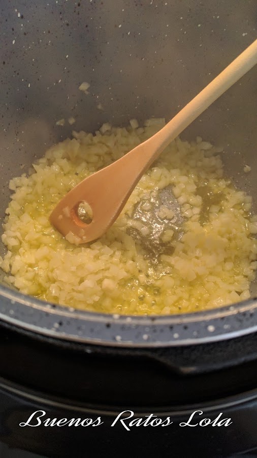 Arroz meloso y Risotto: 200% de caldo (2 de caldo por cada uno de arroz) menú guiso, presión predeterminada y 6 minutos. Despresuriza inmediatamente y mantén en la cubeta removiendo hasta que termine de hacerse.