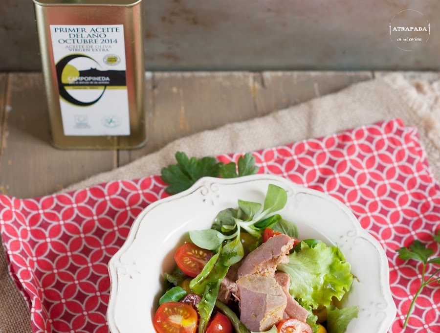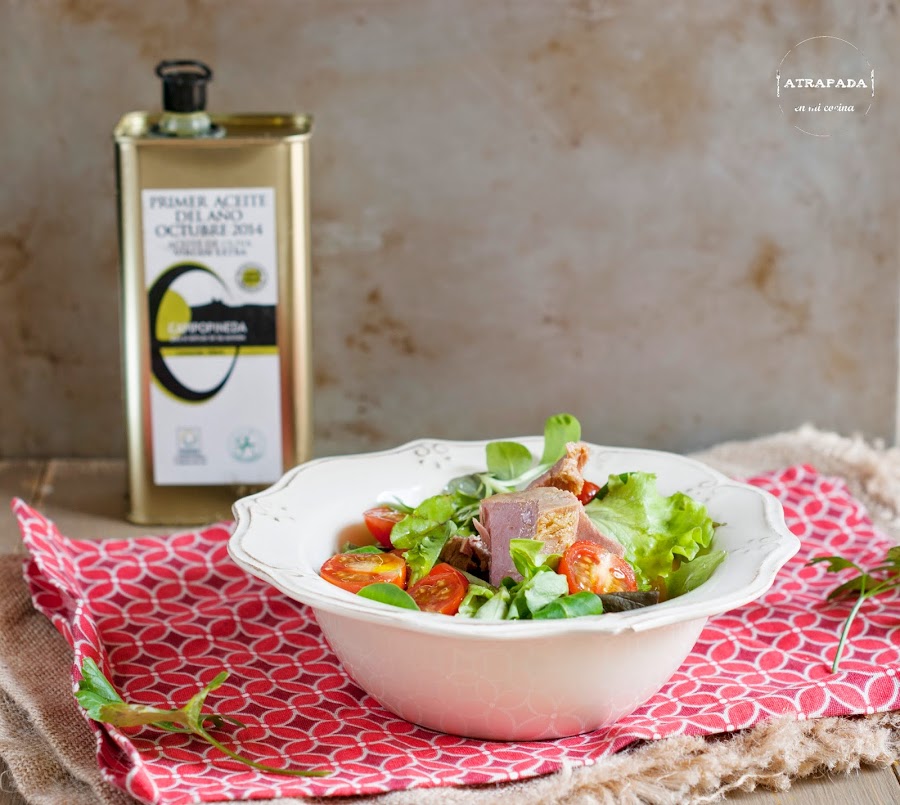 Imaginaros en lo que se convierte una ensalada con este atún en aceite casero, y si además la aliñamos con el primer AOVE del año, de la D.O. Montes de Granada, en la almazara Campopineda, de la que tuve el gusto de ver su primera prensa y traerme el aceite para casa, la ensalada se convertirá en un lujazo.