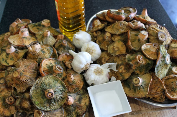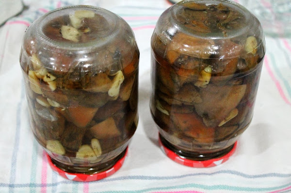 -No he puesto cantidades porque depende de las que tengáis, yo os recomiendo que ya que os ponéis hagáis bastantes, mas o menos de tres kilos de setas rellené dos botes de kilo.