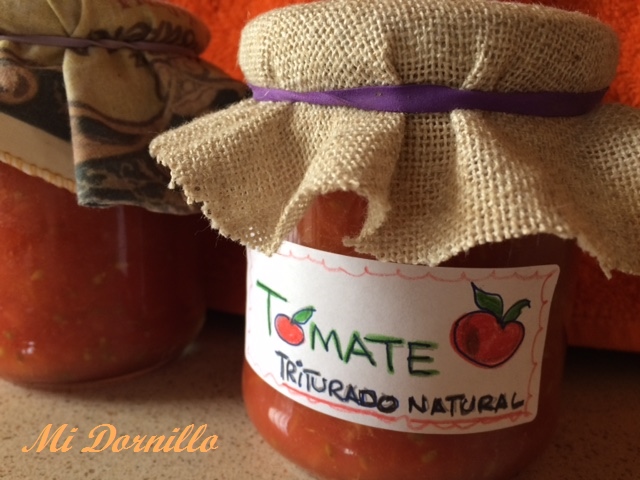 Ponemos los tarros bien tapados boca a bajo en una olla cubiertos de agua y cocemos sobre 25 minutos. dejar enfriar dentro de la olla.Sacar del agua y reservar. Ya tenemos nuestro tomate que nos durara varios meses.