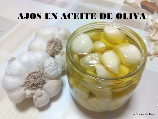 hoy no os traigo una receta, sino un consejo y esté no es mas que coger unas cuantas cabezas de ajos, pelarlos y meterlas en un bote de cristal con aceite de oliva virgen extra( yo suelo guardar los de conservas para aprovecharlos para otra cosa)