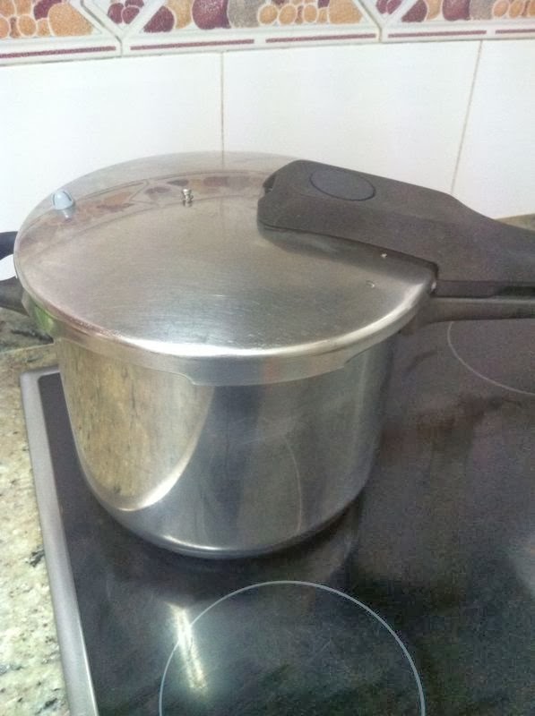 A fuego máximo hasta que la válvula este arriba. La mantendremos durante 15 minutos, bajando a fuego medio, y una vez pasen esos minutos, apagaremos el fuego y esperaremos a que baje.