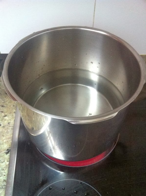 Empezaremos poniendo el agua en la olla a presión, poniendo el fuego a temperatura máxima.