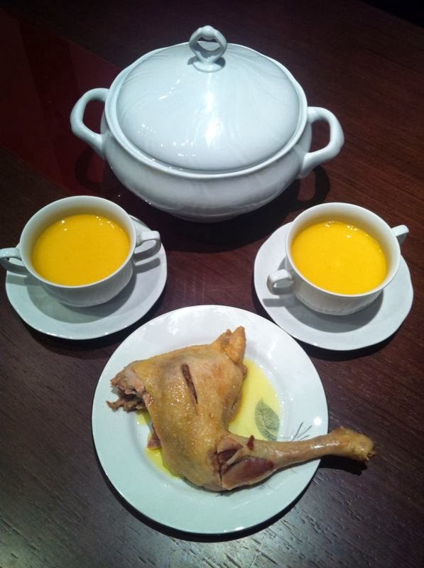 Un consome delicioso, y como acompañamiento o segundo plato, un poco de gallina con aceite de oliva y sal.