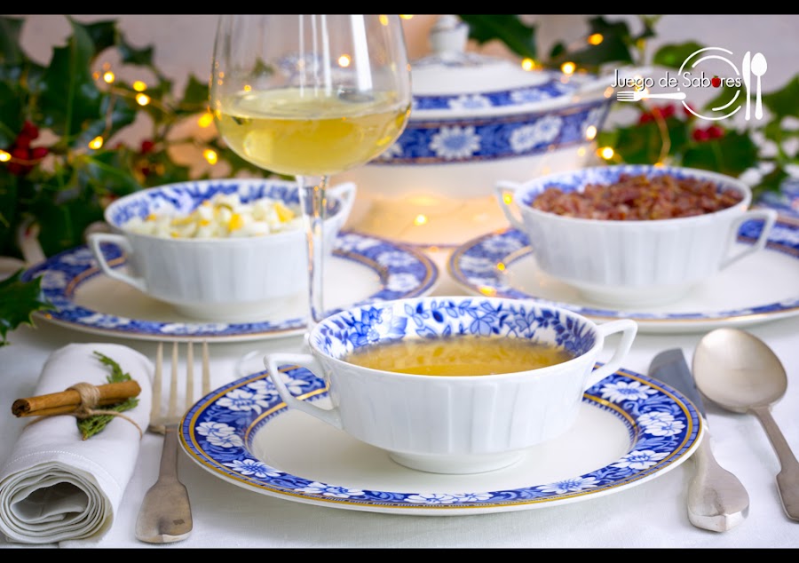 “En comunidad no muestres tu habilidad”. Nuestra cuñada Conchi no estaba muy al corriente de este refrán castellano que viene a decir que si demuestras saber hacer una cosa, todo el mundo siempre te encargará hacer esa cosa. Bueno, pues Conchi hace un consomé de Navidad celestial. Lo hizo un año –ya ves, tuvo este descuido- y desde entonces es la encargada de hacerlo cada Navidad.