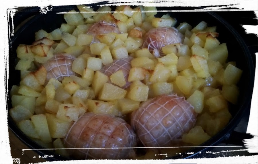 Unos ricos contramuslos de pollo rellenos de jamón y queso es el plato que queremos enseñaros hoy. El contramuslo debemos comprarlo sin hueso para que la tarea nos sea mas fácil y no destrocemos la pieza si no sabemos hacerlo. Hay que abrirlos y los rellenaremos de jamón y queso, haremos un rollito y los ataremos, los mios van recubiertos con la piel de pollo y así evitar que el queso se nos salga. Los colocamos en una cazuela junto a las verduras que mas os gusten, yo cebolla y zanahoria, sazonamos y vertemos un buen vaso de moscatel dejaremos una media hora macerando y cubriremos nuestra cazuela con papel de aluminio bien sellada para evitar que se nos salga todo el vapor, dejaremos en el horno durante 45 minutos a 180°c. Después de este tiempo quitamos el papel de aluminio, le añadimos las patatas a tacos previamente fritas y continuaremos cocinando hasta que veamos la carne dorada. Al tapar con papel de aluminio conseguimos que se cocine sin perder jugo por lo que nos quedara una carne jugosa y sabrosa.