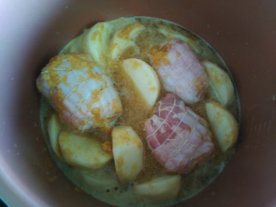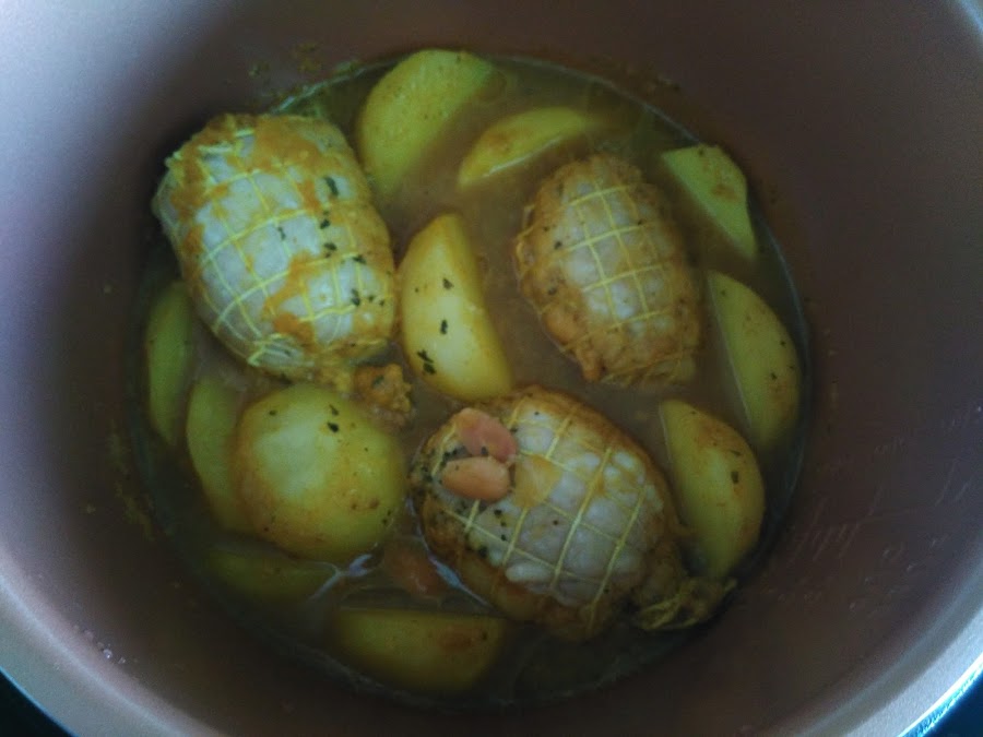 Cuando pite, despresurizamos manualmente. Colocamos las patatas en la cubeta de la cecofry y sobre ésta los contramuslos.