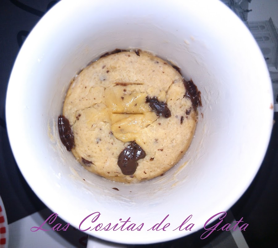 Hace tanto que apunté la receta que a día de hoy no recuerdo siquiera de dónde la saqué, de todas formas la receta original la cambié porque algunos ingredientes bien no tenía bien no los quería poner, aún así ha resultado una cookie al microondas realmente digna. He de decir que he usado aceite de oliva (vale, a lo mejor ha sido un poco bestia, lo admito), y el sabor se ha notado algo fuerte, aún así no me ha disgustado para nada. Y allá vamos: