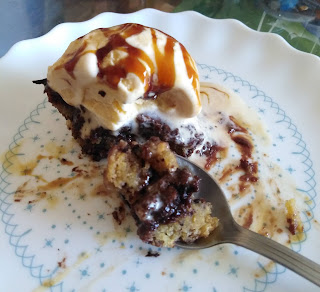 Derretimos la mantequilla con el chocolate, le añadimos el azúcar y el huevo batido. Tamizamos la harina con la levadura y la añadimos.