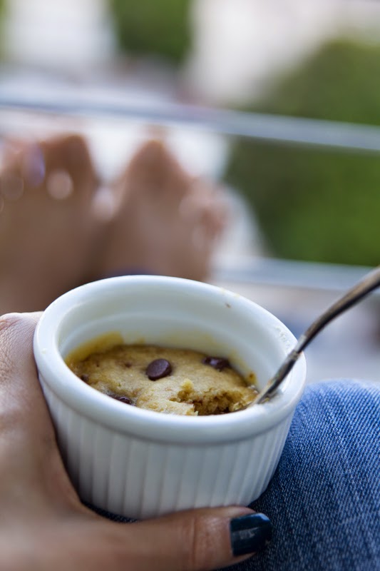 Y como Internet sirve para todo y más, conseguí esta receta de galleta de chispas de chocolate para hacer en taza, y en cuestión de segundos ya tenía resuelto el tema del antojo (yo he tardado dos minutos en hacerla). No es la maravilla de las galletas, pero si no podemos esperar y nos sentimos egoístas y no queremos hacer tres docenas de galletas para regalarle a todo el que se cruce en nuestro camino, esta receta es la ideal.