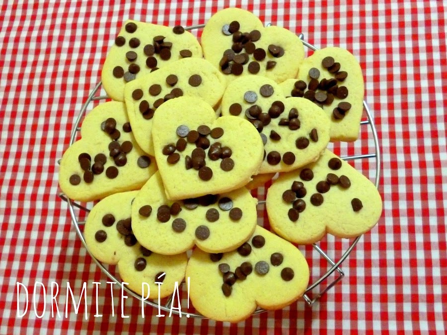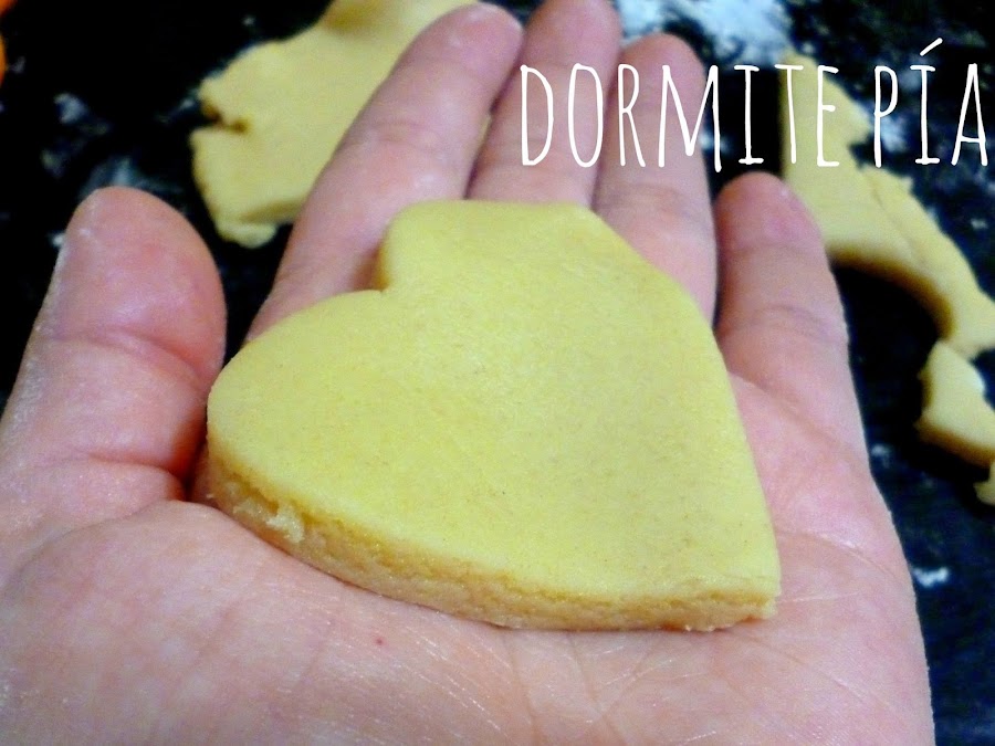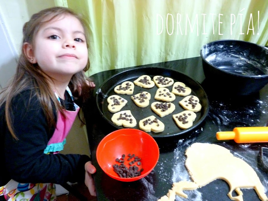 Re fáciles. Como Pía está como loca con el tema de las masas, cortantes y palitos de amasar la exploté un ratito y la puse a hacer galletitas.