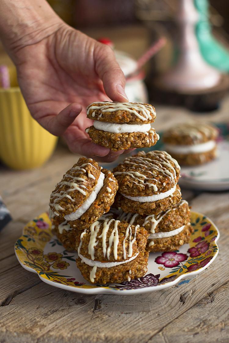 Son tremendamente deliciosas, me encanta comerlas sin relleno y con relleno porque este relleno es suave y ligero, para nada pesado como los clásicos buttercream de los carrot cakes, te invito a una galletita…¿te apetece?