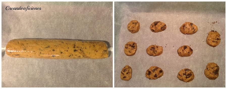 Lo sacamos de la nevera y cortamos con un cuchillo, un centímetro de grosor más o menos y las ponemos en la placa del horno, encima de un papel de horno.