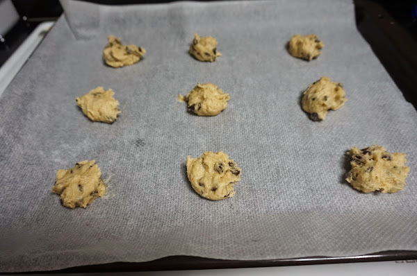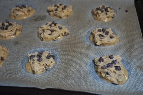 Si queréis que se vean más las gotas de chocolate, antes de meterlas en el horno podremos mas gotas de chocolate encima de cada masa.