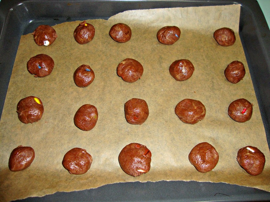 Ponemos un papel de horno sobre la fuente de horno y vamos formando bolitas del tamaño de una nuez y las colocamos un poco separadas unas de otras. Metemos en el horno caliente a 180ºC durante 10 minutos y sacamos y dejamos enfriar.