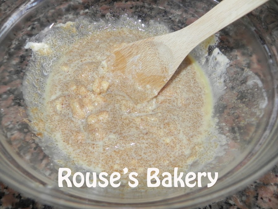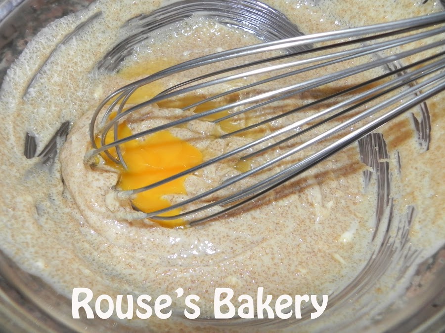 Ponemos la mantequilla derretida y el azúcar en un bol y lo mezclamos con una cuchara de madera.
