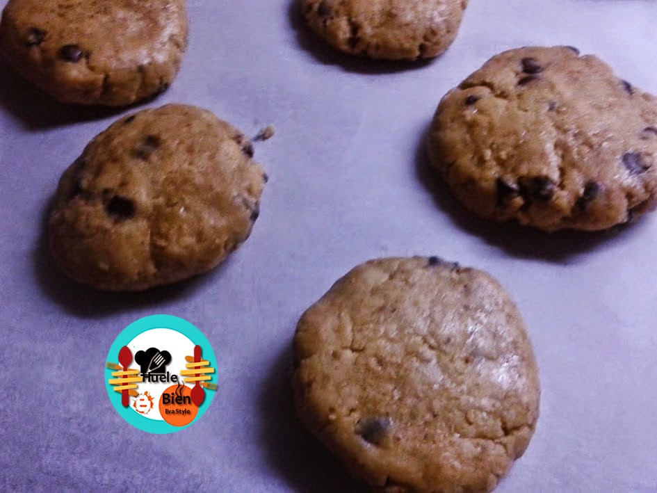 1.- En un cuenco ponemos los ingredientes: la harina, la levadura, la margarina, el sésamo, el huevo y la sal. Lo amasamos todo con las manos hasta formar una pasta homogénea. Le añadimos las pepitas de chocolate y seguimos amasando esta que estén bien mezcladas.