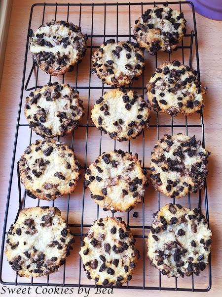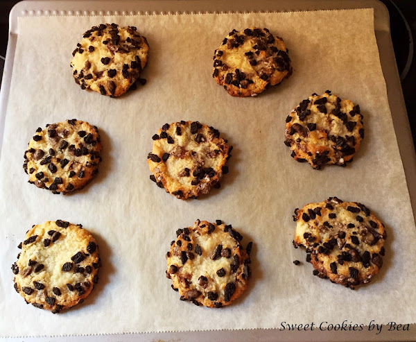 Las he puesto muy separadas porque no sabia cuanto se iban a expandir. las horneamos unos 15 minutos, hasta que los bordes cojan un ligero tono tostado.