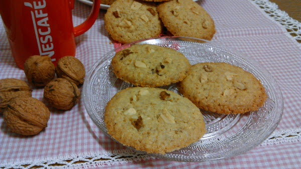 Estas son exquisitas, duritas por los bordes y ligeramente blanditas por el centro, con esos trozos de nueces y con el chocolate blanco cremoso y mantecoso.