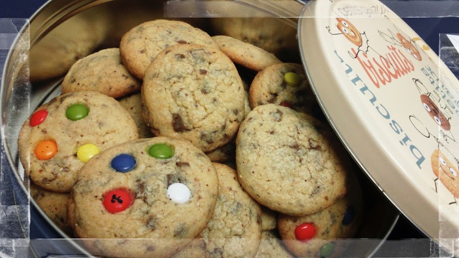 Un lujo de cookies.. buenísimas.. galletas de mantequilla rellenas de trocitos de chocolate con leche y avellanas, se nos han colado algunos lacasitos en mas de una, pero habiendo pequeños en casa, no podían faltar.. Si estáis buscando una galleta rápida, fácil y además rica, aquí tenéis vuestra galleta, prometido..la fuente de la receta viene de el blog La cuchara de Neter que se basa en una de Lorraine Pascal modificada..