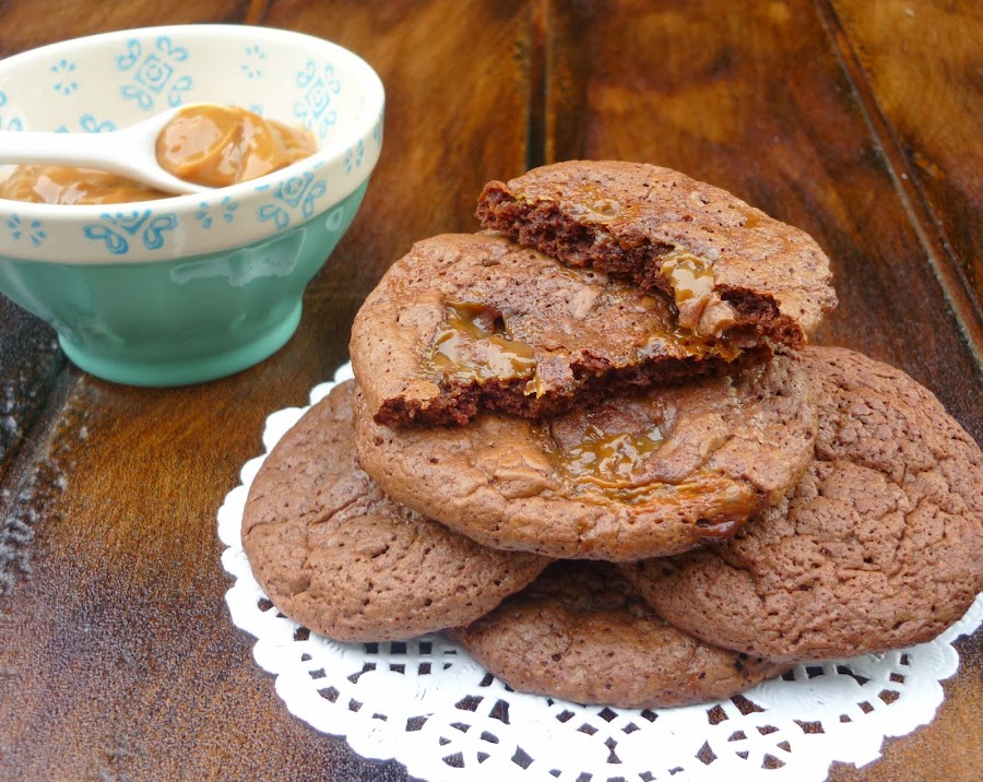 Estás galletas llevan una temporadita guardadas sin salir a la luz y con lo buenas que están para que esperar más. Porque desde luego que son para repetir y repetir. Eso si os gusta el chocolate y el dulce de leche, claro. Como a mi me encantan, pues repito!!!