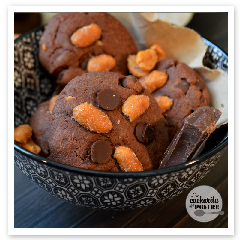 Y en nada de tiempo, casi sin ensuciar cacharros en la cocina, tendrás estas galletas crujientes por fuera y tiernas por dentro, con un toque "crunch" de los chips de chocolate y los cacahuetes. Lo mejor es que no son excesivamente dulces porque la sal de la mantequilla de cacahuete contrasta a la perfección con el chocolate.