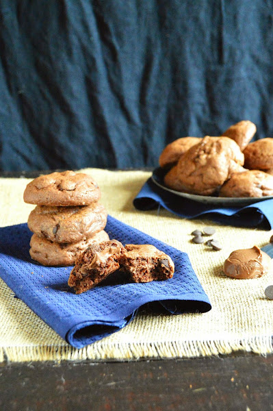 Si no me llegaba suficiente chocolate con la nutella y las pepitas hice la masa de la galleta también de chocolate... chocolate llama a chocolate, jejeje. Están para morirse de buenas, una te pide otra y... si les hago caso me las acabo, jejeje. A Juan le encantaron también y eso que no es chocolatero como yo!!! Como diría Bego: "vaise do mundo" jejeje.