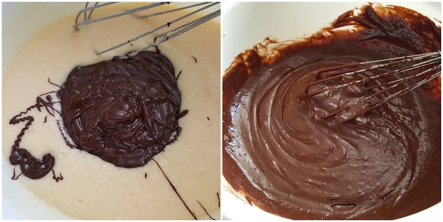 4. - Ahora añadiremos el chocolate derretido y mezclaremos de nuevo.
