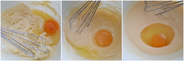 3. - Le añadimos un huevo y mezclaremos bien, hasta que quede bien integrado, luego el otro huevo y repetimos la misma operación, y haremos lo mismo con el tercero.