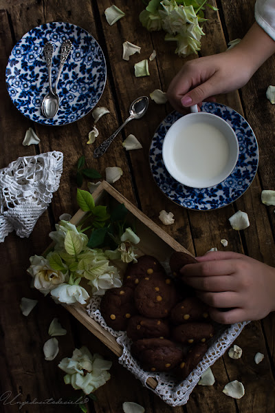 Como podéis apreciar en las fotos la mejor manera de comer estas cookies de chocolate es mojándolas en la leche ¡¡bien fría!!