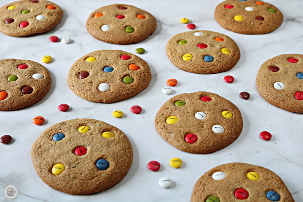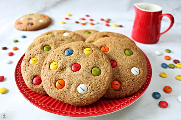 Son ideales para meriendas entre amigos, para reuniones familiares, para acompañar el café en el curro, es decir, cualquier momento es bueno para comerse una mega cookie de lacasitos J