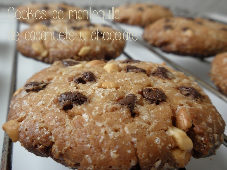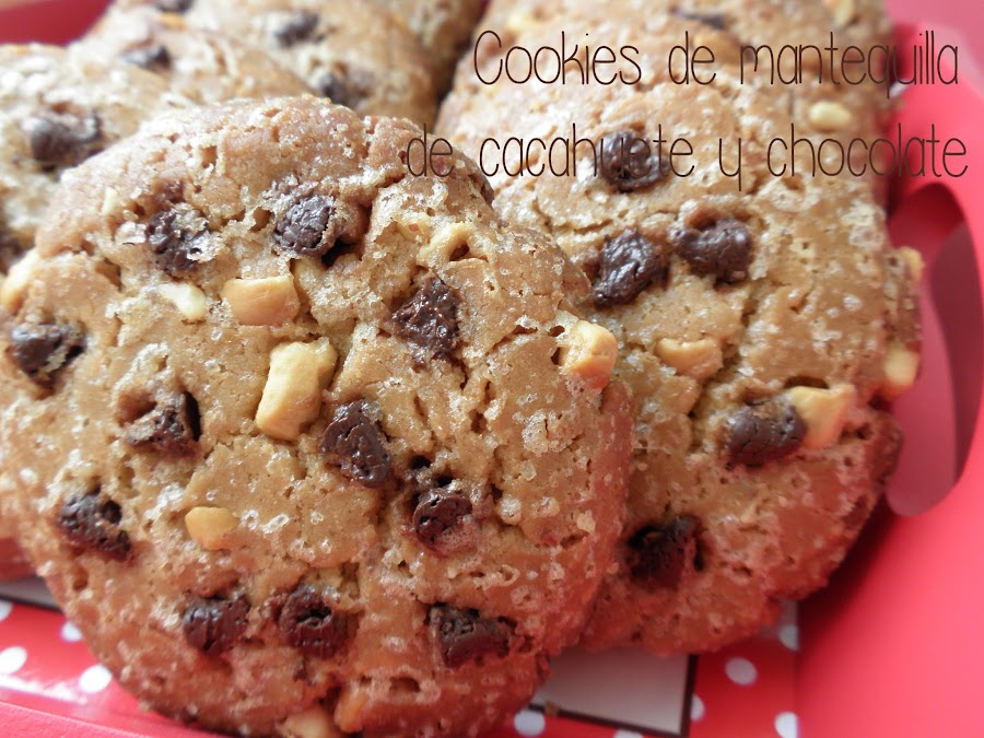 Hoy os dejo una receta de Cookies de mantequilla de cacahuete y chocolate, buenísima! el sabor que da la mantequilla de cacahuete combinado con los chips de chocolate, realmente sorprende. Me imagina un sabor más intenso y empalagoso, la verdad. Pero no. Puedes apreciar perfectamente el sabor del cacahuete sin que acaba cansándote antes de acabarte el primer bocado.