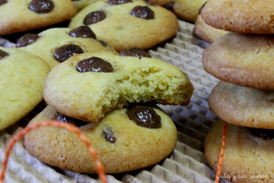 Hoy os dejo con unas galletas cookies de naranja y chocolate. Si, ya se que hace mucha calor y no apetece poner el horno, pero éstas son muy especiales, las han hecho mis sobrinos, Carlos y Lara , que han pasado unos días con nosotros en casa y nos hemos entretenido haciendo taller de cocina. Además de éstas, las han hecho de lacasitos y también unas magdalenas buenísimas.
