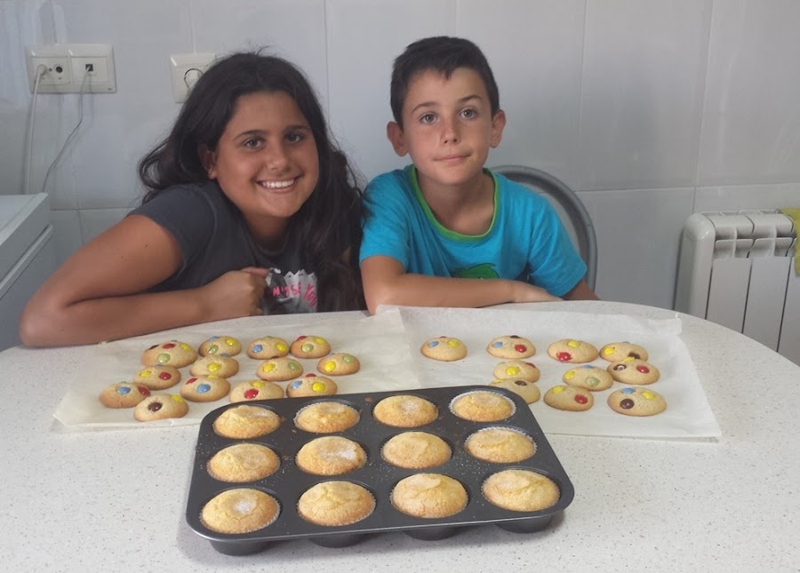 ¿Os apetece una?Os presento a los autores de estas galletas que además hicieron unas estupendas magdalenas y otras galletas con lacasitos. ¡¡Van a ser unos estupendos cocinillas!!