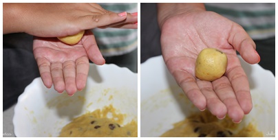 La sacamos, cogemos porciones pequeñas con una cucharilla y hacemos bolitas.