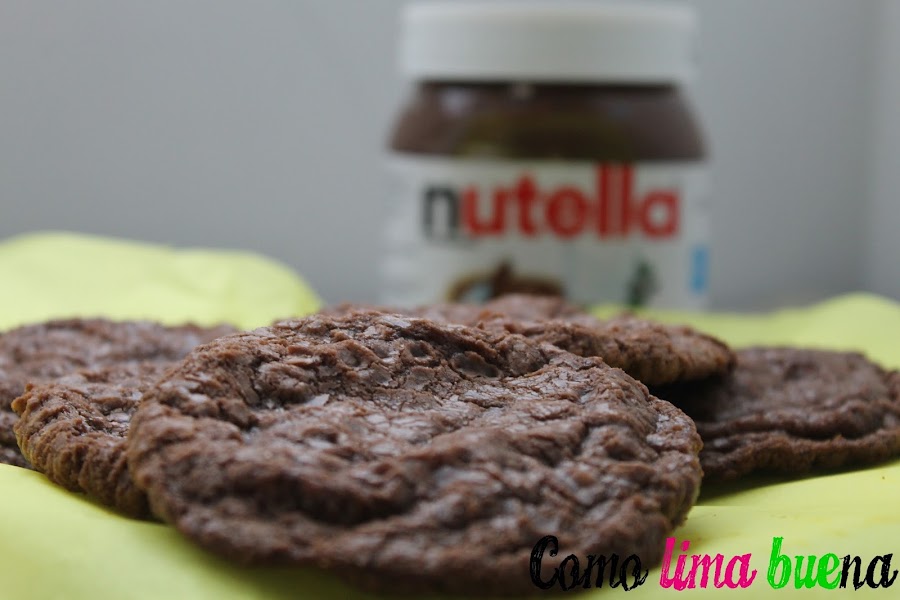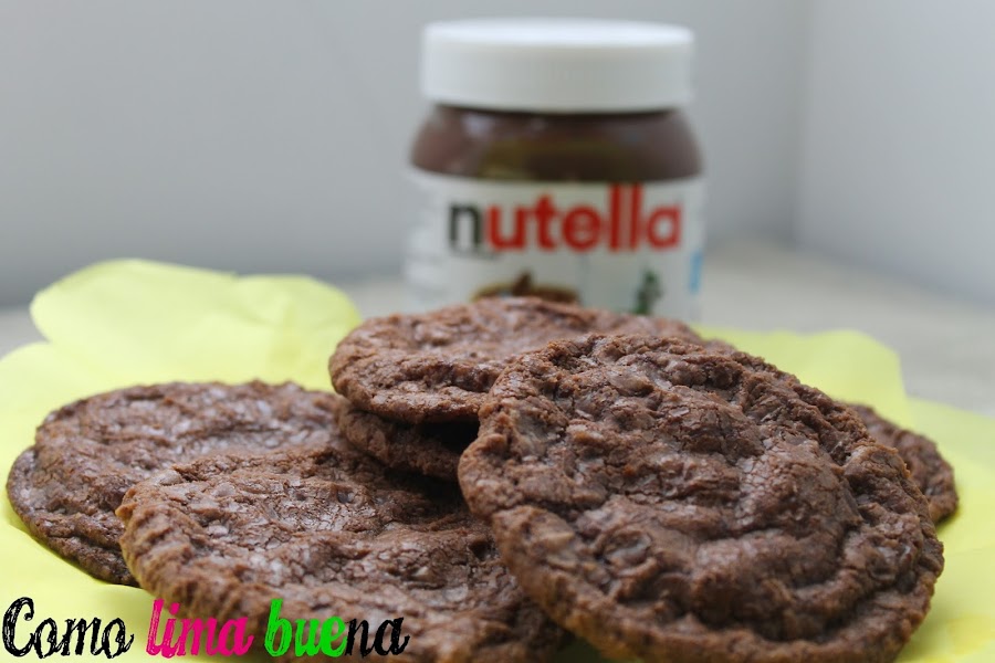 Batimos el huevo con el azúcar, añadimos la harina tamizada, mezclamos bien y por último agregamos la Nutella. Mezclamos bien hasta obtener una mezcla grumosa.Hacemos bolitas con la mezcla y las colocamos en la bandeja separadas una de otra. Aplastarlas con un sello o con la base de un vaso. Si las queremos crocantes aplastarlas mucho, si las queremos blanditas y tiernas no aplastarlas demasiado. Hornear durante 10 minutos.