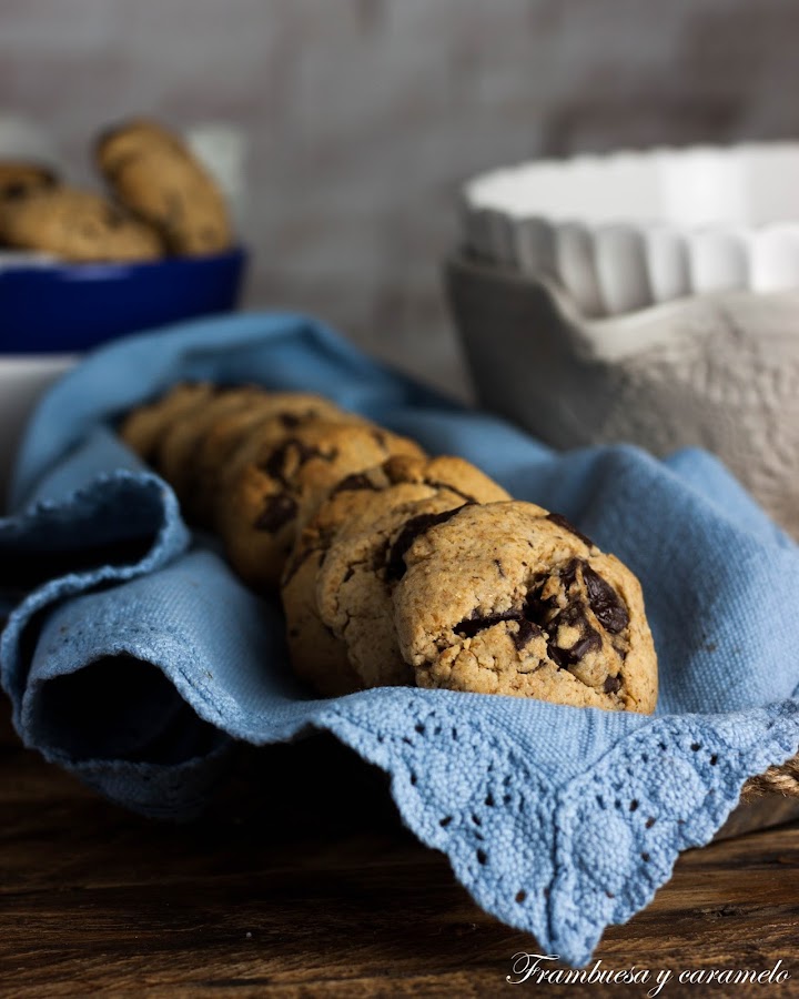 Siempre nos gustaron las cookies de las grandes superficies, una marca muy conocida concretamente, pero como de un tiempo a esta parte hemos conseguido casi desterrar por completo esos productos de nuestra cesta de la compra era necesario tener una receta sencilla, rápida y muy rica para matar el gusanillo.