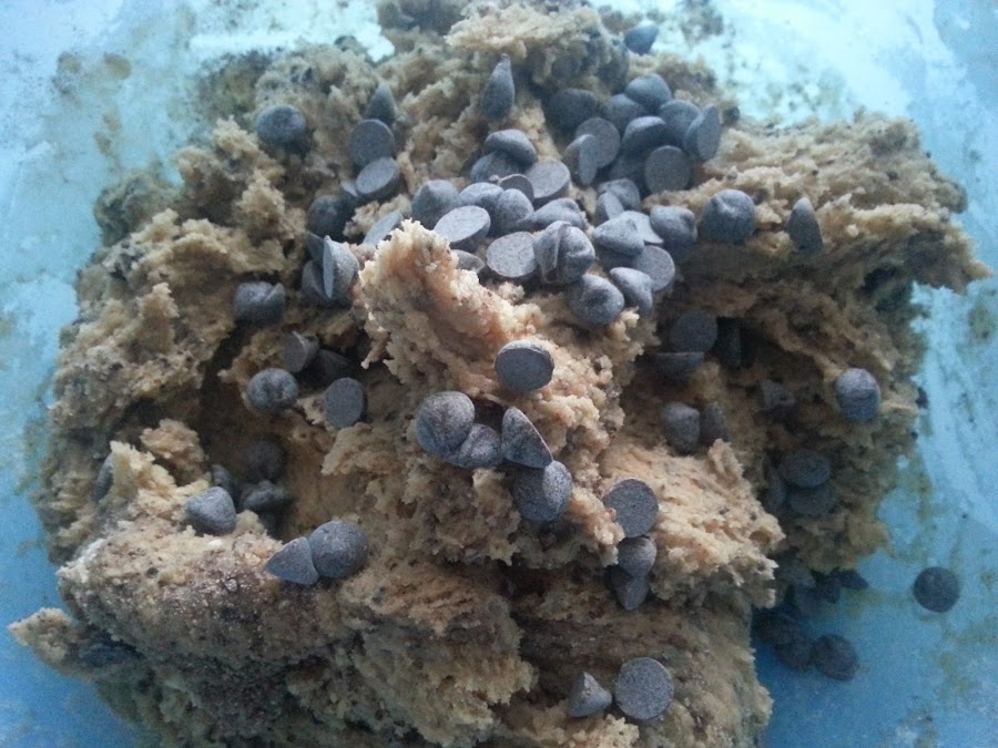 3. - Por último le añadimos las pepitas de chocolate y ya tenemos la masa.