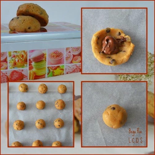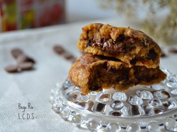Decir que están ricas es quedarse corta??. Una tarde de esas lluviosas en las que una está ociosa y con ganas de hornear, entré a echar un vistazo en Pinterest y allí vi un mosaico con tres fotos dónde había unas galletas que me hicieron babear al instante , con la nutella desbordante y el chocolate derritiéndose ??..ainssss, pero oh , no venía la receta , asi que me las apañé para hacerlas a mi manera y el resultado no podía haber sido mejor , salvando las distancias, claro??