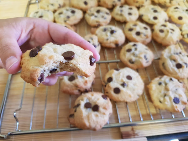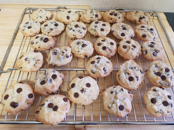 Ya que estamos esta tarde tranquilitos, me he puesto hacer unas cookies, y así mañana para desayunar, tenemos unas deliciosas galletas.