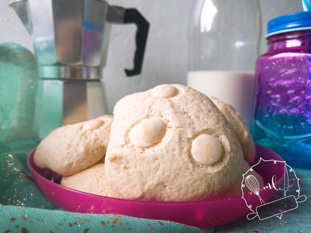 A quien no les gustan las cookies? Bueno supongo que si que hay gente a quien no le gustan. Y llamalas como quieras: cookies, galletas, pastas de te… Yo las he llamado cookies porque les he añadido unas chips de chocolate blanco y se parecían a las chocolate chip cookies. No solo son sin mantequilla, sino sin ninguna grasa añadida (salvo la propia del huevo y en mi caso, de las chips de chocolate blanco). Asi, parece que da un poco menos de pena comerselas, verdad?. Y tampoco llevan azucar en mi version, sino tagatosa. Pero para aquellos que sigais tomando azucar, os doy tambien la cantidad.