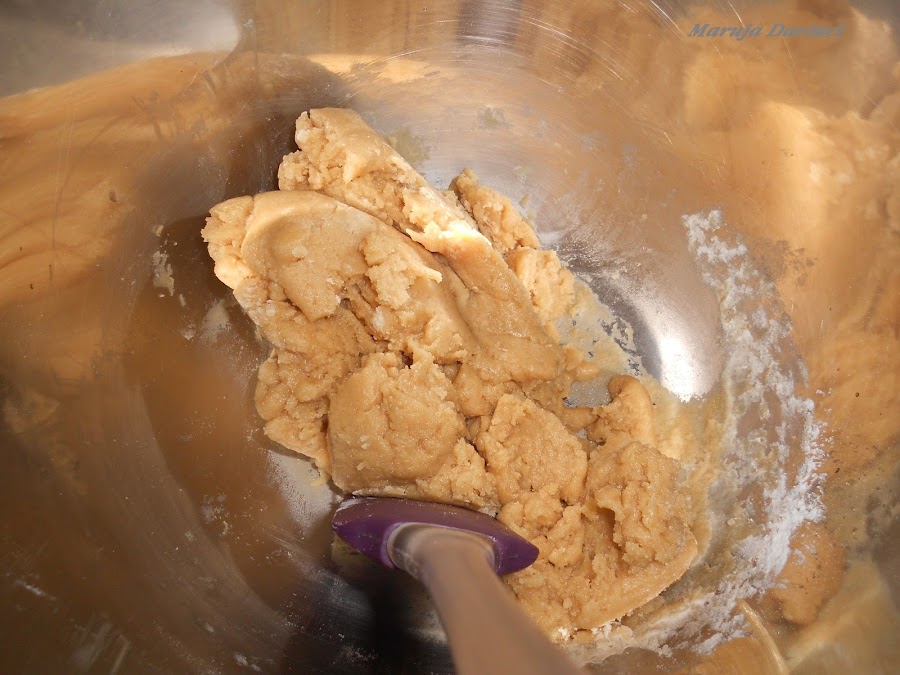 Mezclar todo bien, hasta que quede una pasta que se pueda trabajar con ella sin que se pegue a los dedos.