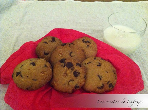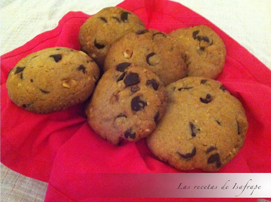 Colocamos papel de hornear sobre la bandeja del horno y vamos poniendo las galletas. Horneamos hasta que los bordes estén de color marrón claro y el centro dorado. No dejéis que se doren más de la cuenta. Una vez hechas las sacamos y las dejamos enfriar sobre una rejilla. Quedan crujientes por fuera con un interior suave.